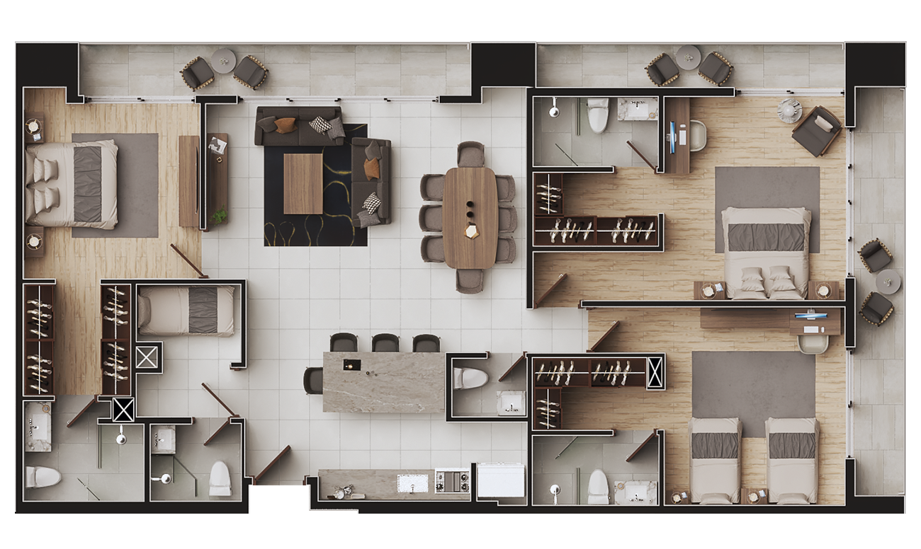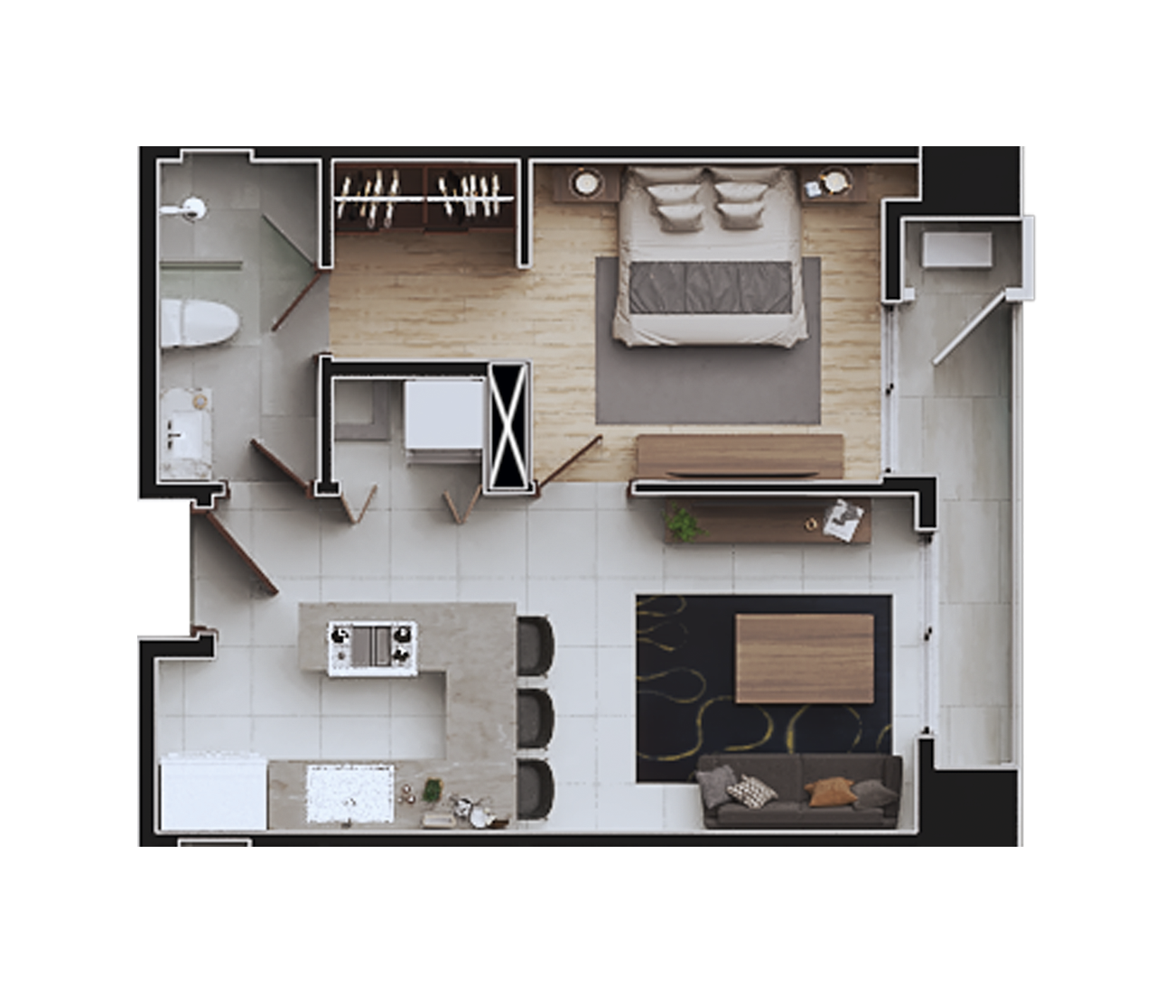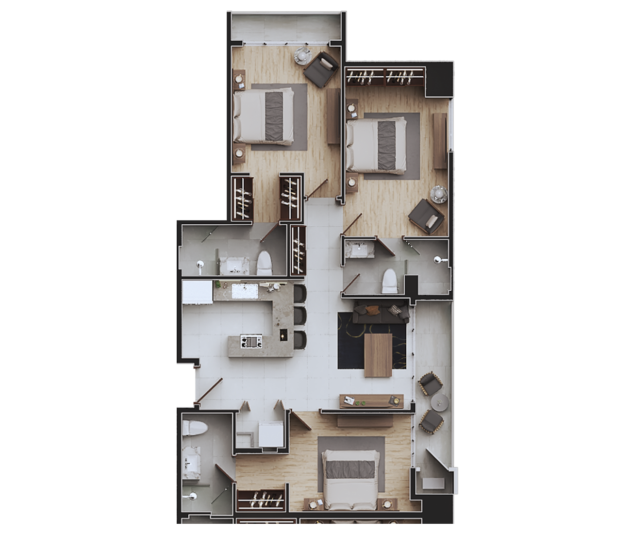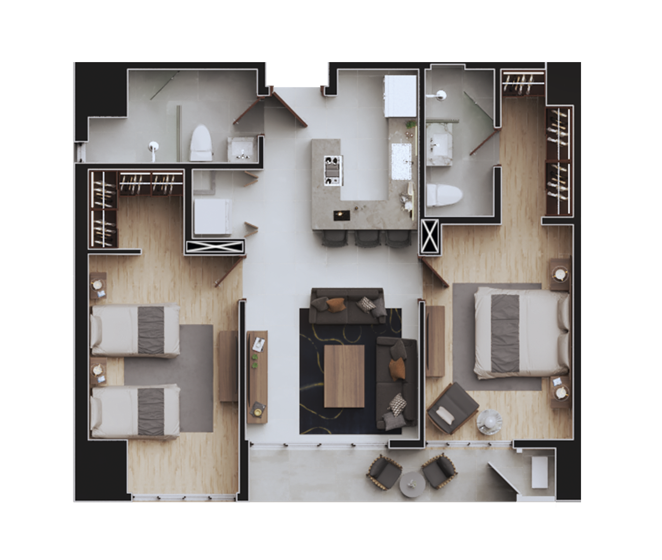 Con superficies que van de 47 m² a 168 m², cada departamento se adapta a las necesidades de sus residentes. Desde una recámara eficiente hasta penthouses amplios, las opciones de vivienda están pensadas para optimizar cada metro cuadrado y ofrecer distribuciones modernas y versátiles.
